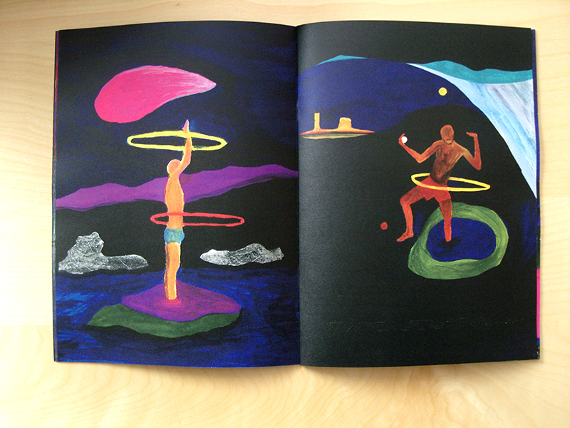 "Au gré des jours entre histoires rêvées, sublimées, vécues, les cercles colorés prenaient leur envol. L'été comme chaque année était là, imperturbable, il semblait ignorer les scènes de la vie quotidienne qui se jouaient au sein de son décor. Le rythme silencieux des balles de jonglage qui frôlaient son corps nous faisait oublier que chacun de ces moments, suspendus dans le temps, pouvaient avoir la fragilité d'un papillon éphémère ébloui par une vision lumineuse."